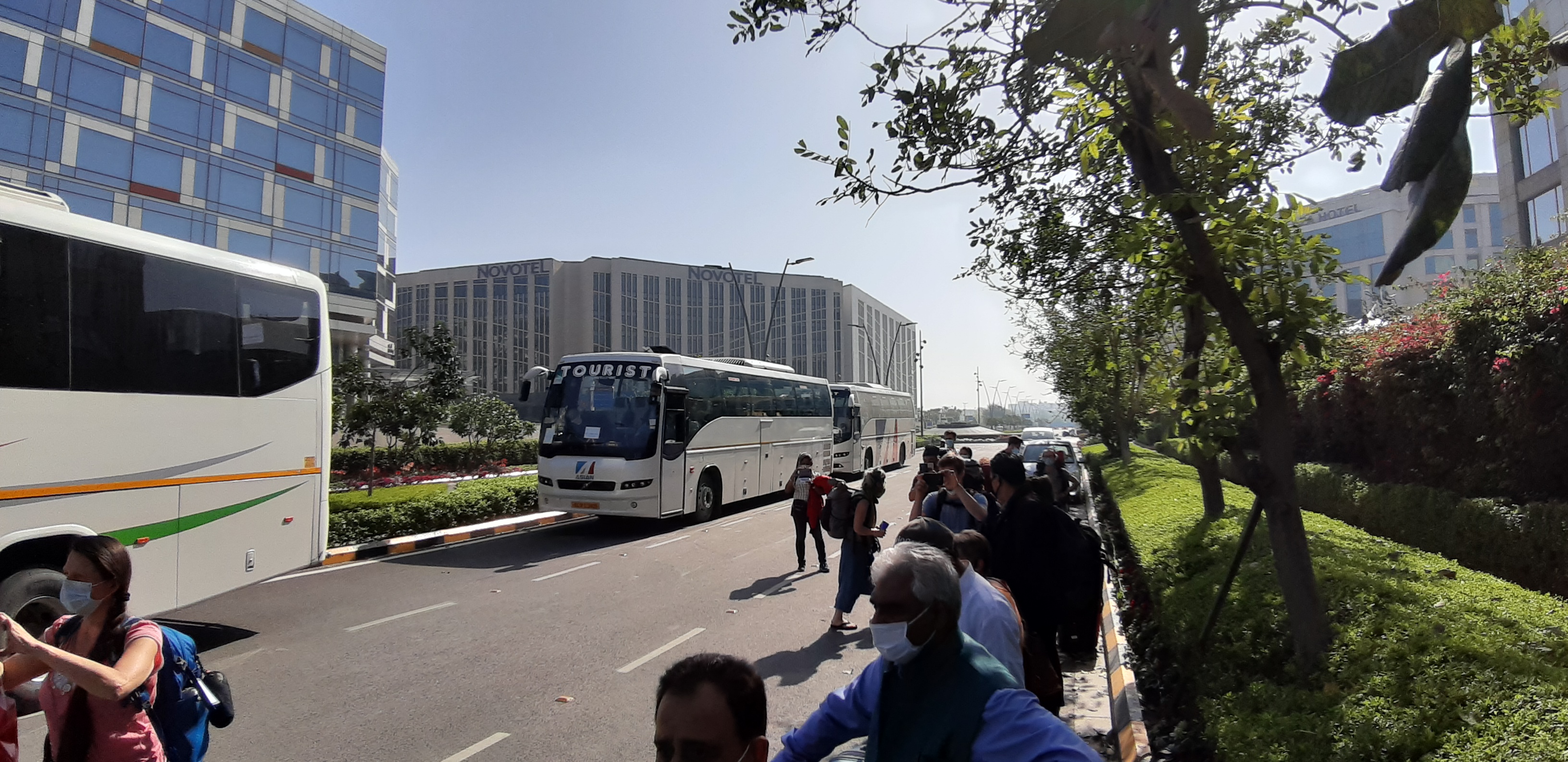 Wir haben einen Platz im Flugzeug, einem A 380!!!, Abflug 2:20 Ortszeit, Ankunft in Frankfurt um ca. 6 Uhr morgens. Um 19 Uhr gehen die Busse ab den Flughafen.
